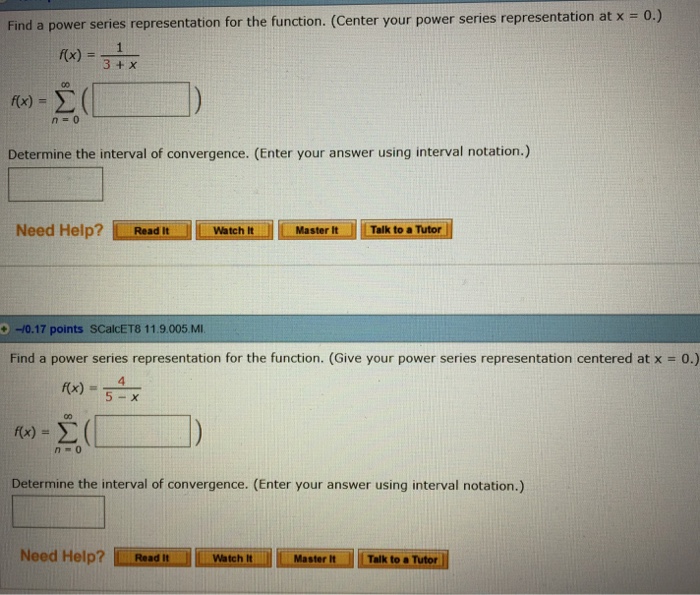 calculus - Find a power series representation for the ... from i.stack.imgur.com Note that the sequence cannot depend on x in order for a series to be a formal power series. Determine a function $f(x)$ such that $f(x) = \sum_{n=0}^{\infty} nx^{n+2}$. Sincef(x) can be evaluated within |x| < r, we can rewrite f(x) = a0 + a1x + a2x2 +…+ anxn the integral of both sides of the equation force the integration of each term through the distribution property of integrals. If you are looking for a maclaurin series for a function f (x), then you can find it by. A formal power series (or formal series) has the form (tao, 2016): Let a generalized power series converge within a limited domain of x values (also known as radius of convergence). Third edition (texts and readings in mathematics) 1st ed. As an example, this is what the series looks like if you strip out the first two terms: